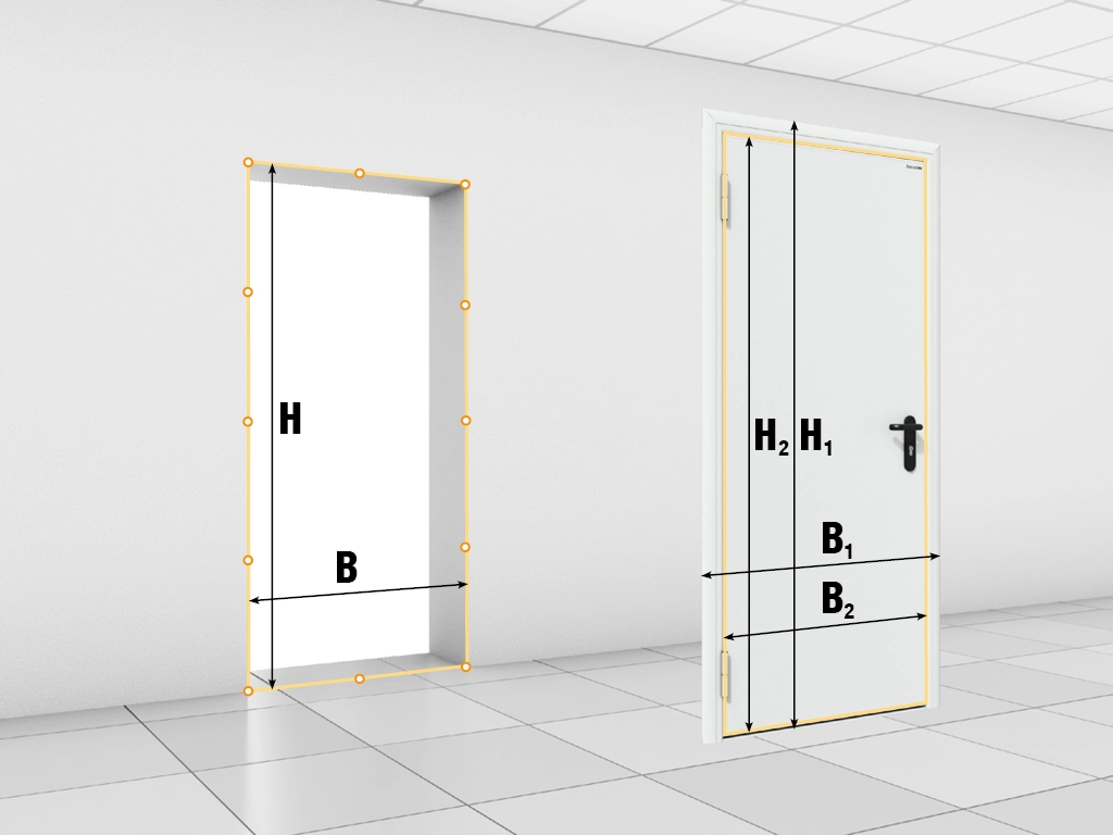 5. B2 × H2 = (B1 - 112) × (H - 90) — при открывании двери на 180°;