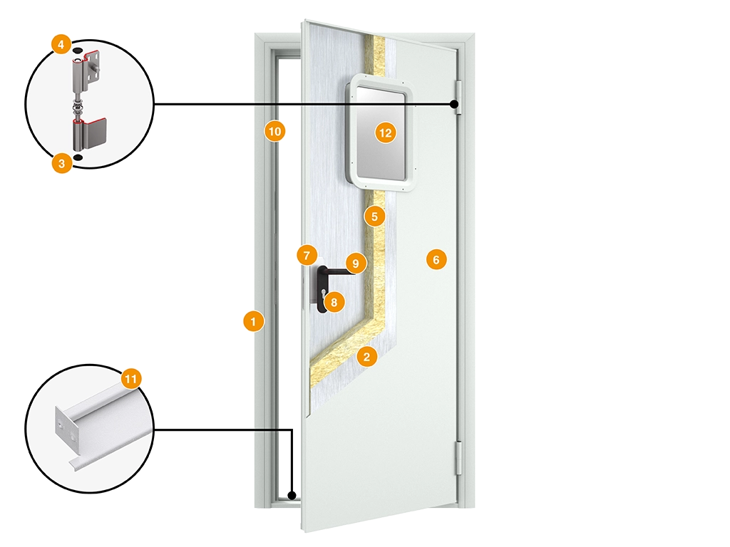 Дверь изготовлена по бесшовной технологии, которая обеспечивает высокую прочность, тепло- и звукоизоляцию. Полотно и рама из оцинкованной стали, поэтому конструкция не ржавеет. В качестве утеплителя применяется минеральная вата высокой плотности. Она не осаживается со временем, поэтому дверь никогда не потеряет своих шумо- и теплоизоляционных свойств.