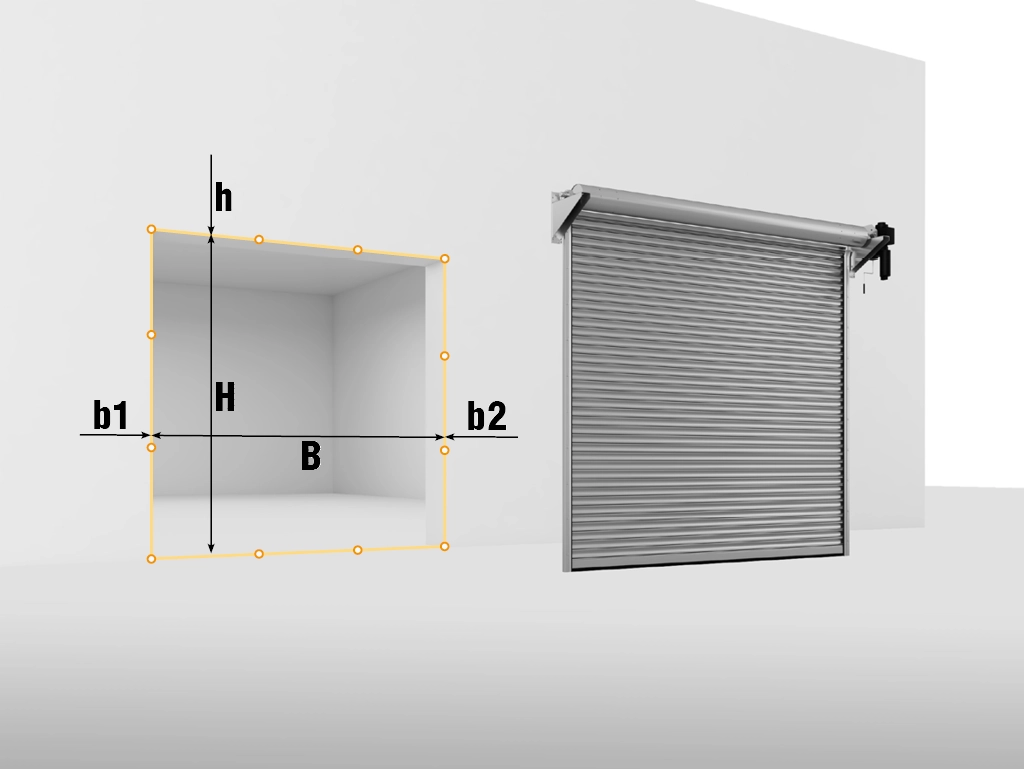 h – высота притолоки (min), мм; b1 и b2 – правое и левое боковые расстояния (min), мм.